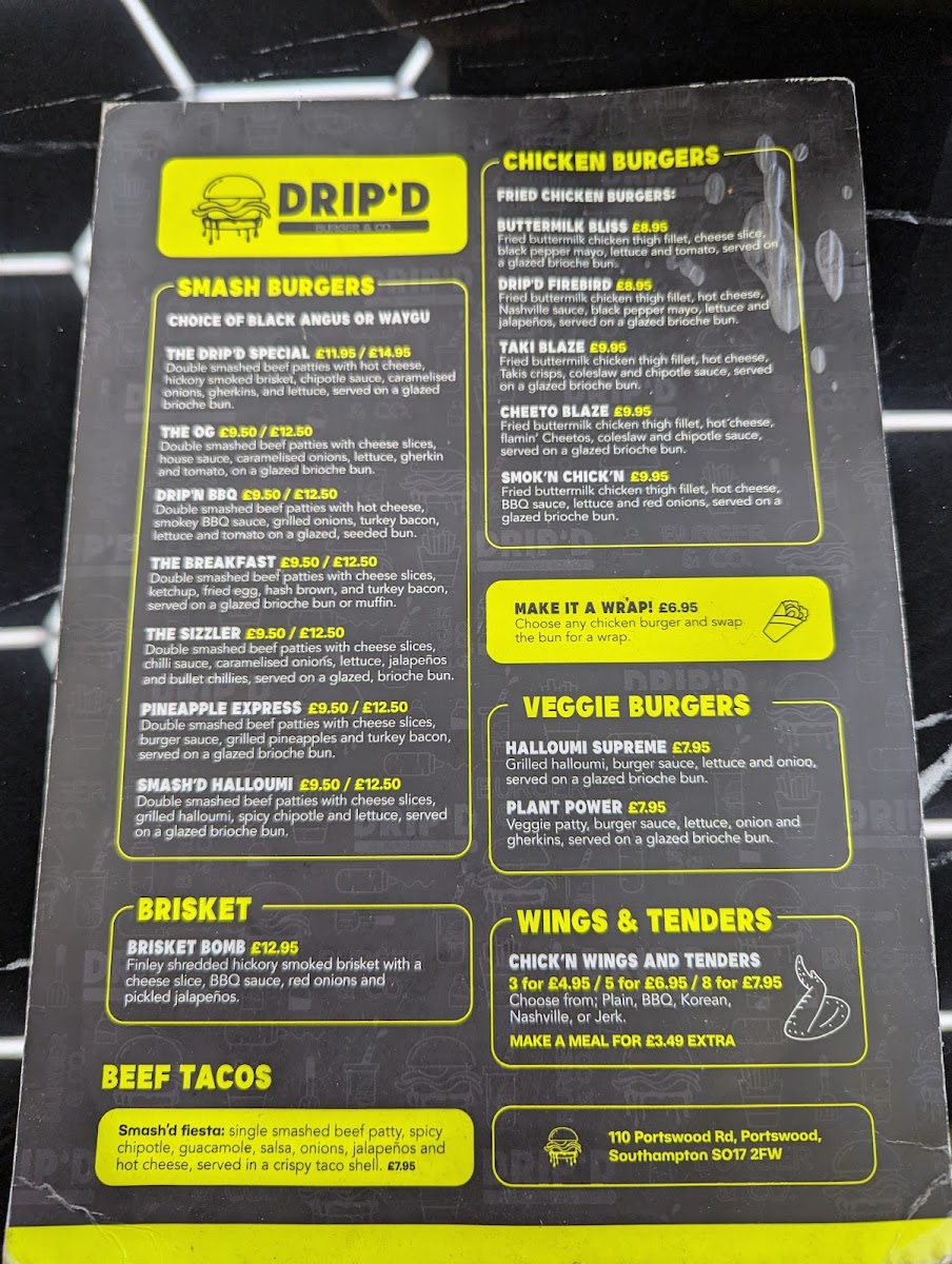 Welcome to Drip’d Burger & Co, a vibrant hamburger restaurant located at 110 Portswood Rd, Southampton. Here, the menu is a delightful blend of classic and innovative burgers crafted to satisfy every palate.